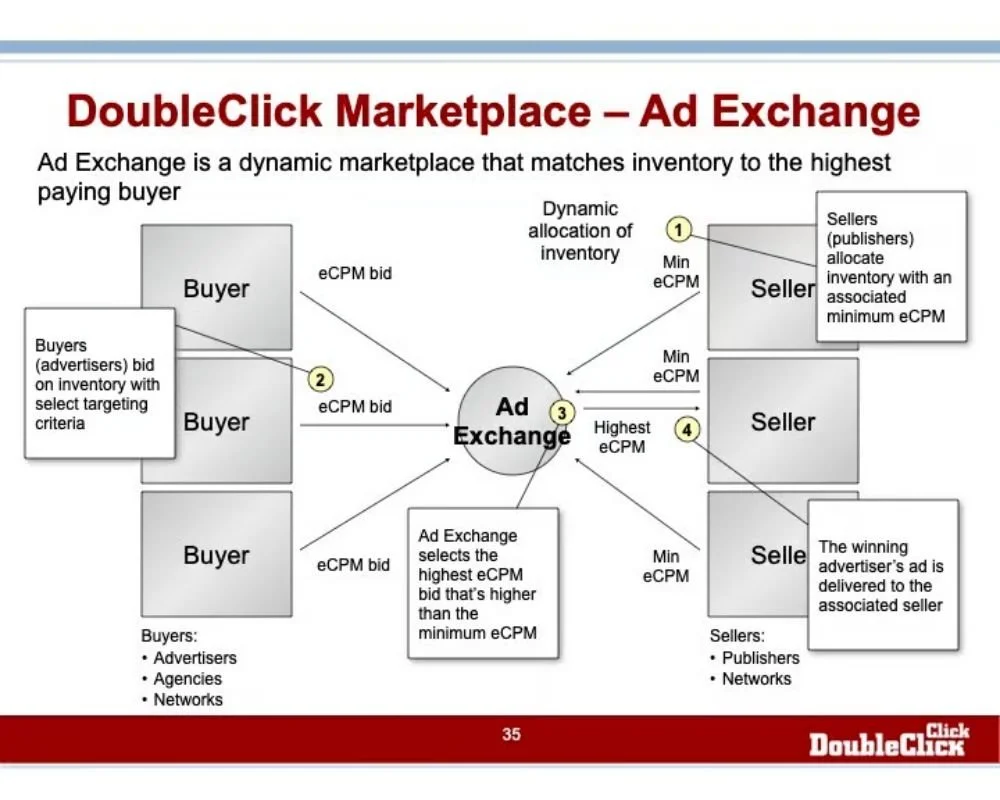 En el momento en que se creó esta presentación, el Ad Exchange estaba en sus primeras etapas y aún se conocía como "DoubleClick Marketplace". En otra sección de la presentación, los ingresos proyectados para el Ad Exchange en 2007 se estimaban en tan solo 800.000 dólares.