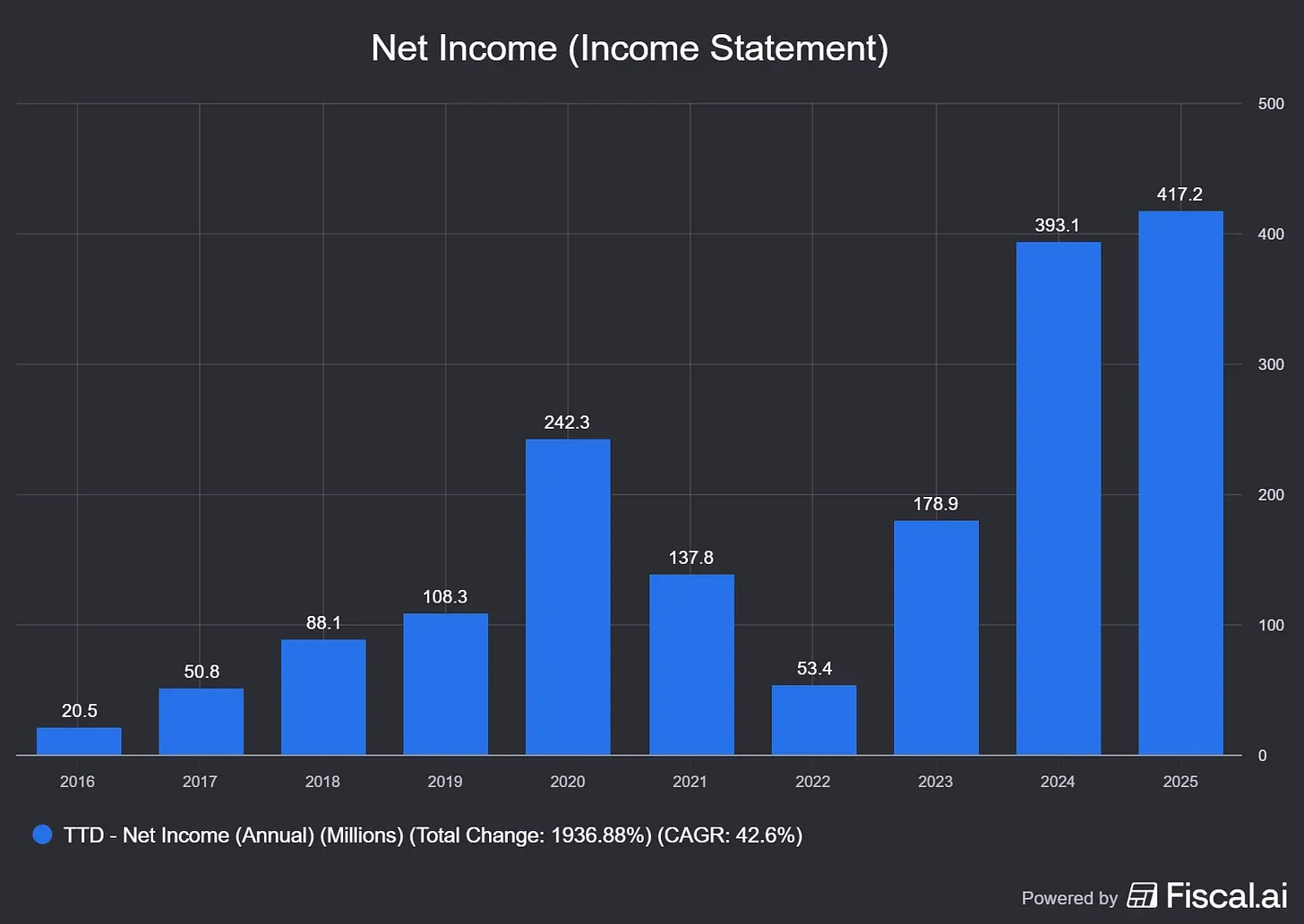 En los últimos meses, el sentimiento inversor ha girado bruscamente. Se acusa a TTD de sobreprecio, de perder cuota frente a Amazon, e incluso de depender demasiado de la Open Web en un entorno cada vez más cerrado, pero los datos muestran otra realidad: