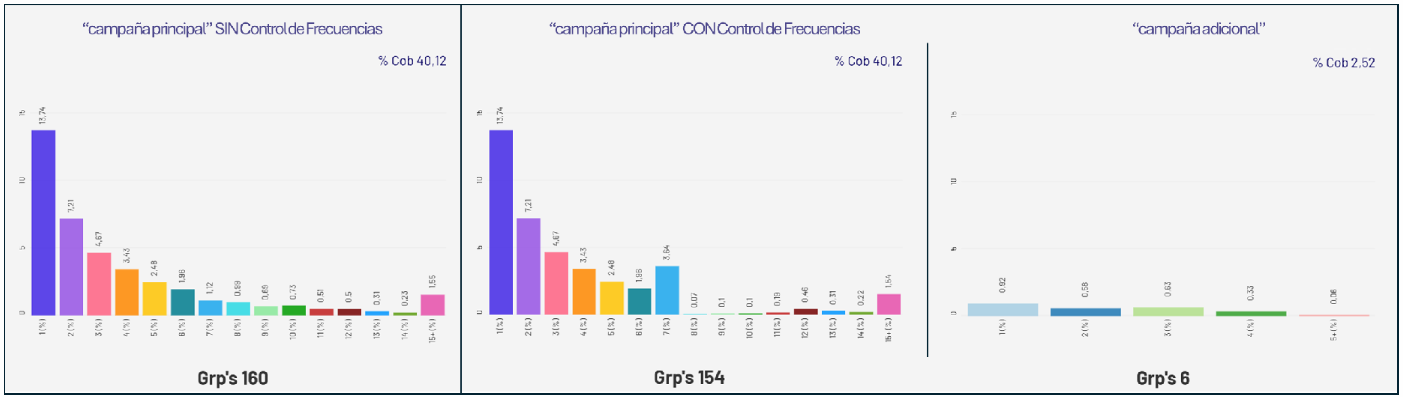 La implementación de esta estrategia ha generado un aumento del +7,3% en la cobertura en el tramo de impactos 1-7, considerado el rango de mayor eficacia publicitaria. Además, la optimización ha permitido transformar los impactos superiores a 7 en contactos para otra marca, alcanzando un 2,5% de cobertura en esta segunda marca.