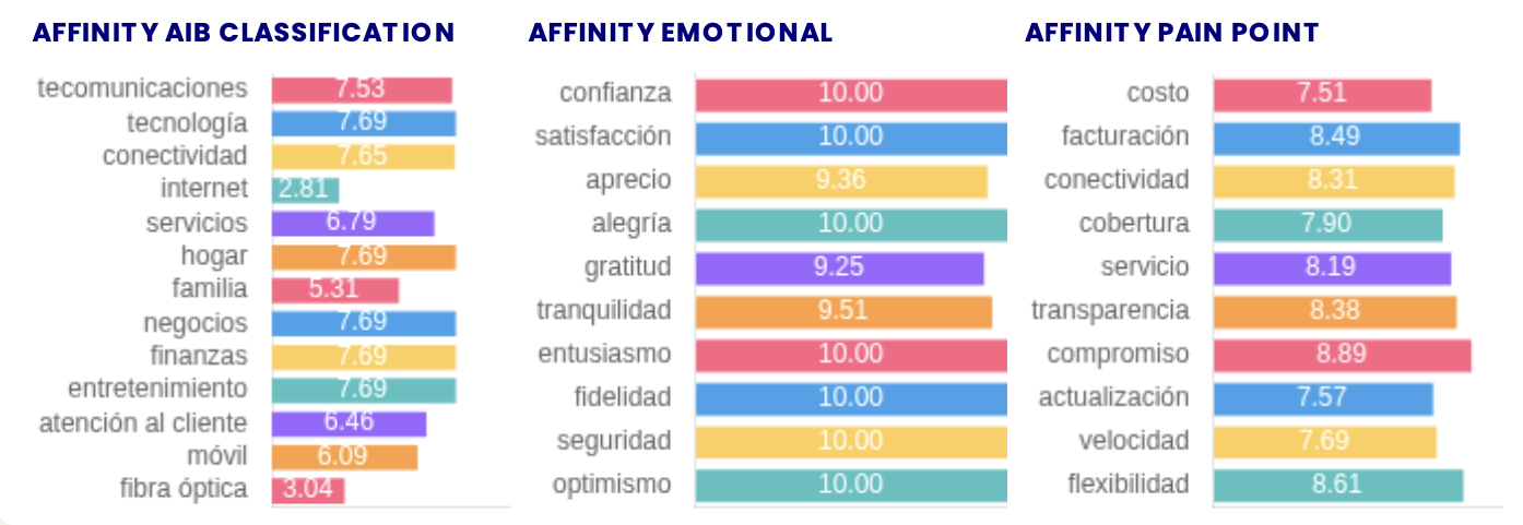 El planteamiento partió de un análisis del briefing con LLMs para identificar conceptos y emociones clave (tranquilidad, libertad, conexión, sencillez) y mapearlos contra temáticas, pain points y categorías IAB relevantes para O2 (telecomunicaciones, tecnología, conectividad, servicios del hogar). El CQS puntuó cada podcast por similitud semántica con listas de emociones (confianza, satisfacción, aprecio, alegría, gratitud, tranquilidad), con taxonomías IAB y con pain points del usuario (coste, facturación, conectividad, cobertura, servicio, transparencia) a fin de priorizar ubicaciones con mayor probabilidad de resonancia.