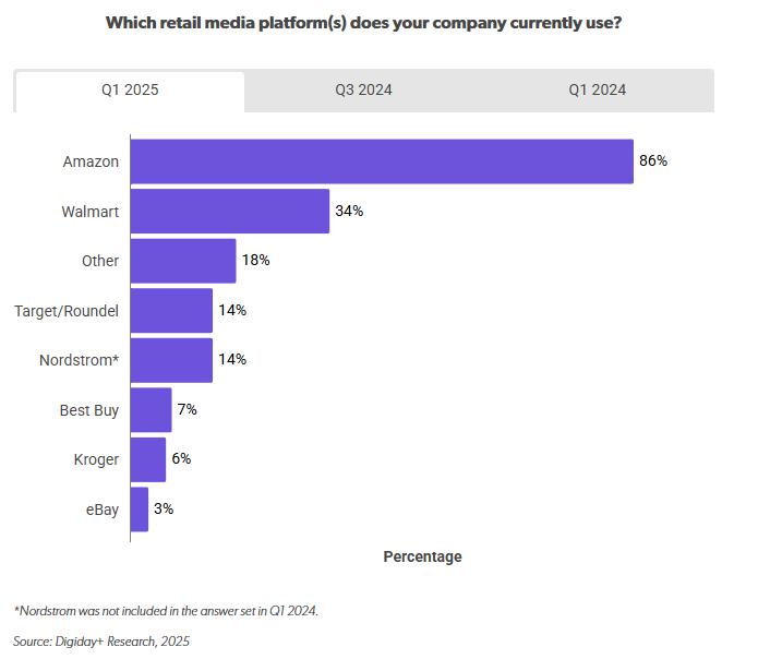El 86% de los profesionales del marketing utiliza Amazon como RMN, muy por delante de Walmart (34%) y Target (14%).