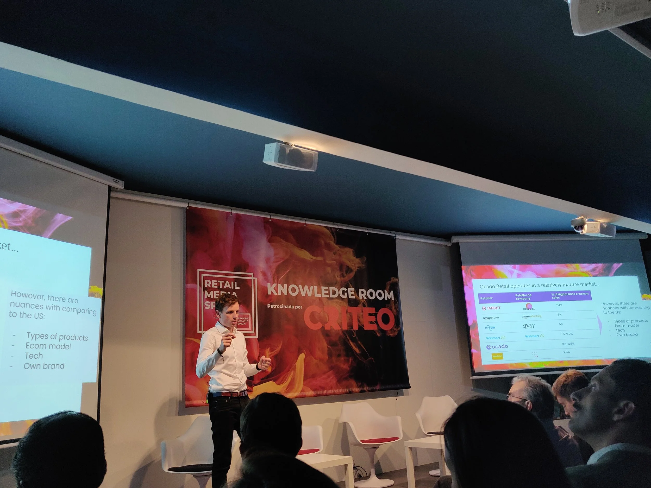 Posteriormente Zac Willis, Senior Manager, Monetization en Ocado. nos dio el punto de vista del Retail Media en UK. “El comercio minorista contable opera con un entorno de comestibles realmente competitivo y el Reino Unido también es increíblemente competitivo desde el punto de vista del Retail Media”.