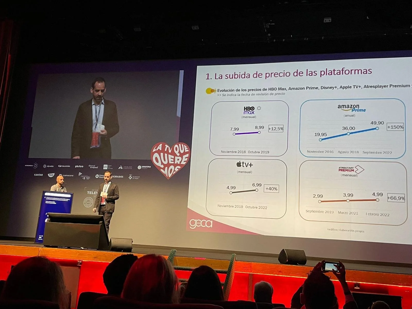 Posteriormente fue el turno de GECA, que realizó su ponencia titulada 'La llegada de la publicidad a los servicios VOD de pago: la opinión de los usuarios y el impacto en el audiovisual' y que fue llevada a cabo por parte de Enrique García, Director de Consultoría Nacional de GECA y Alejandro Denche, Consultor Senior de GECA. En ella se habló de que las OOTs están presentes en más del 65% de los hogares. Según sus estudios, más del 62% de los usuarios tienen dos o más plataformas de pago . 7 de cada 10 utilizan Netflix o Prime Vídeo, ambos con puestos de liderazgo y les siguen HBO y Disney.