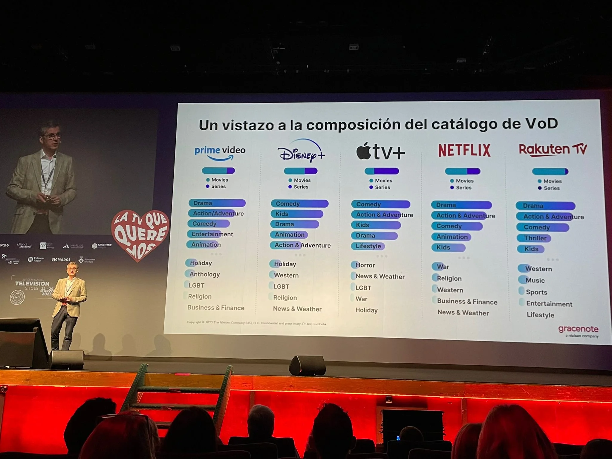 A continuación Julien Roques, Sales Director Europe de Nielsen, Gracenote International realizó su presentación 'Peak TV y el problema de la elección'. En ella habló de cómo resolver el problema de la elección de contenidos por parte del consumidor. Destacando que analizando la metadata se pueden elegir keywords e imágenes en función de los gustos del espectador para ofrecerles contenidos relevantes y mostrando la mejor imagen de programa para cada usuario. Además categorizando los programas se ayuda a encontrar una audiencia receptiva a los anuncios que estén visualizando un programa relacionado con el contenido de la publicidad. Con esto se aumenta un 11,2% de horas vistas/visitante y un 7% los títulos vistos. El extraordinario poder de la personalización.