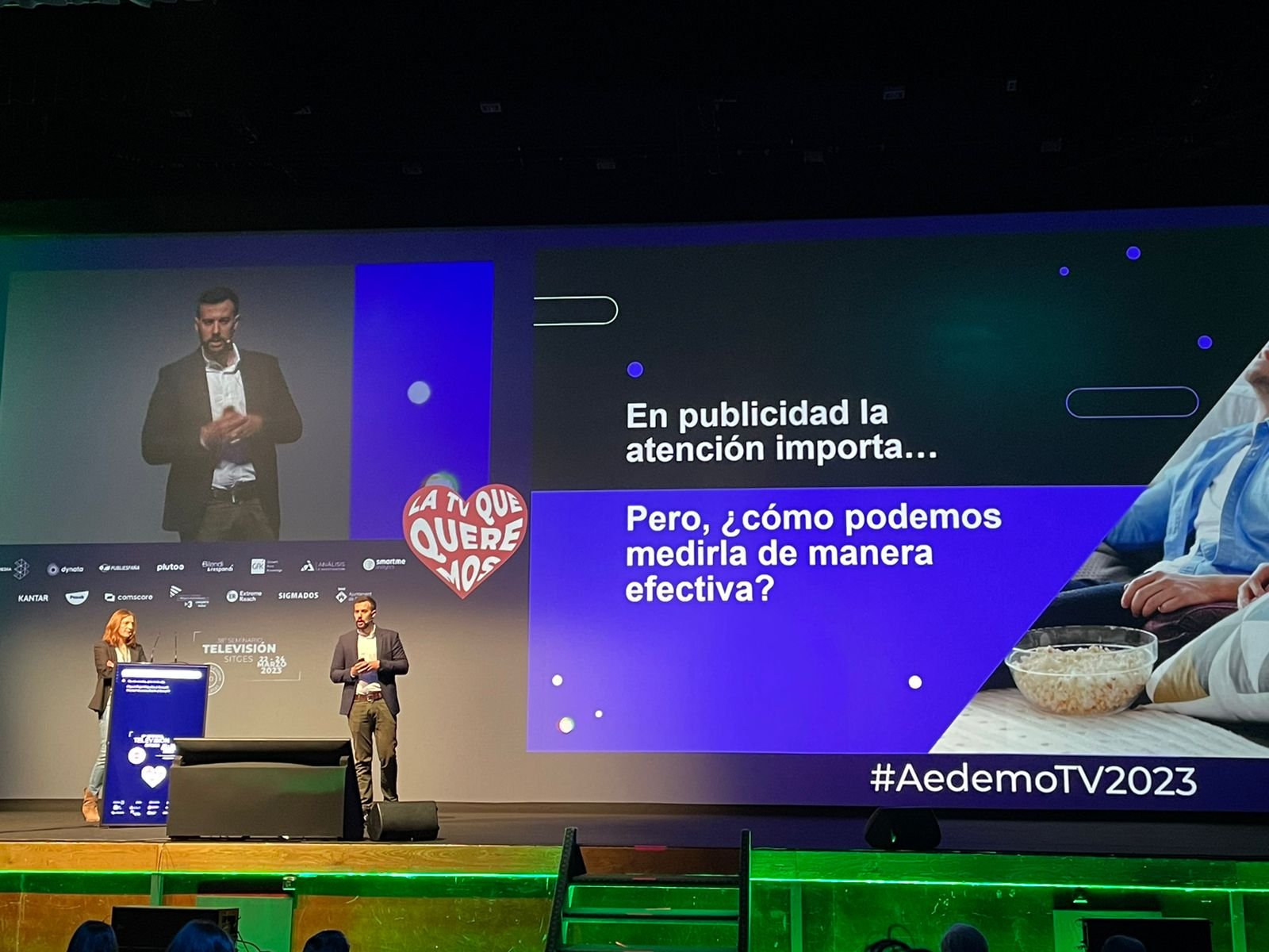 Los terceros en este bloque fueron Atresmedia Publicidad, que por medio de Marta Rojo, Directora de Investigación de Audiencias de Atresmedia Publicidad y Fernando Pino, Director Servicios de Marketing de Atresmedia Publicidad realizarían esta intervención titulada 'A = EC X P'. En ella se trató el estudio del recuerdo publicitario con el objetivo de evaluar la eficacia y experiencia publicitaria del formato vídeo en diferentes dispositivos y plataformas usando la neurosciences. A su vez se destacó que el contenido y el tamaño de la pantalla importa en términos de atención y experiencia (Fórmula: Atención = Emoción^Contenido x Potencial de visionado).