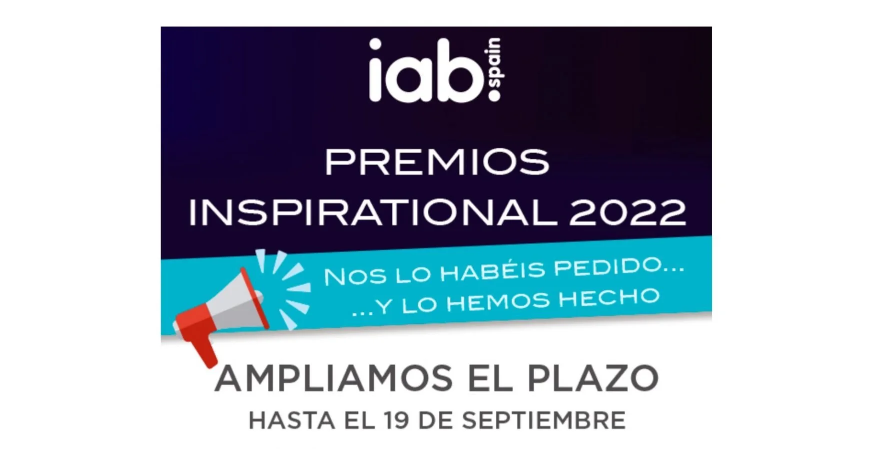 Se amplía al 19 de septiembre el plazo para inscribir piezas a los Premios Inspirational 2022, que reconocen las campañas, proyectos y empresas más inspiradoras para el sector de la comunicación y publicidad en entornos digitales inscribiendo proyectos exhibidos entre septiembre de 2021 y septiembre de 2022.