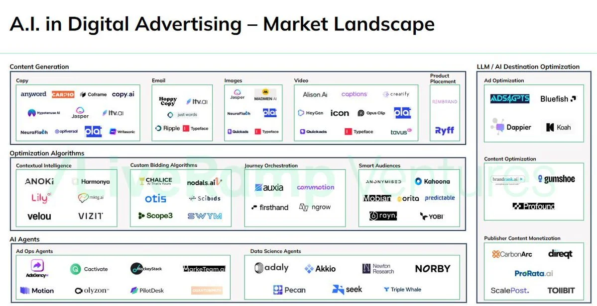 LiveRamp Ventures ya ha dado un primer paso y se ha atrevido a publicar un primer mapa de IA en publicidad digital bastante acertado, con 4 categorías: