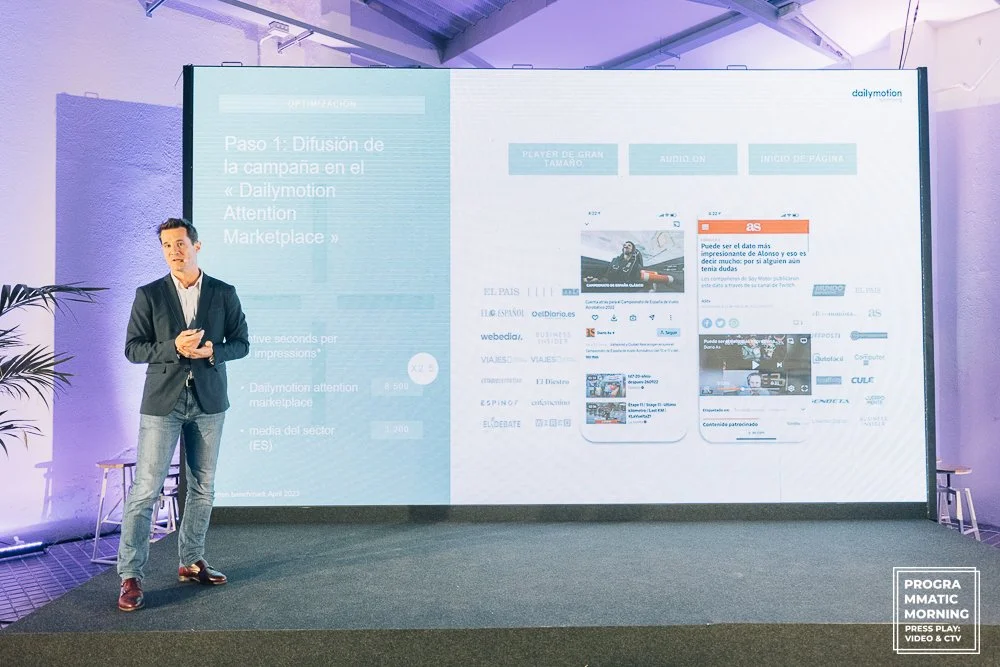 Tras una pausa para el café y el networking, la jornada retomó su curso con la ponencia de Juan Millán, Head of Spain Dailymotion Advertising en Dailymotion, que comienza su ponencia "¿Cómo optimizar la atención publicitaria gracias a la First-Party Data?"