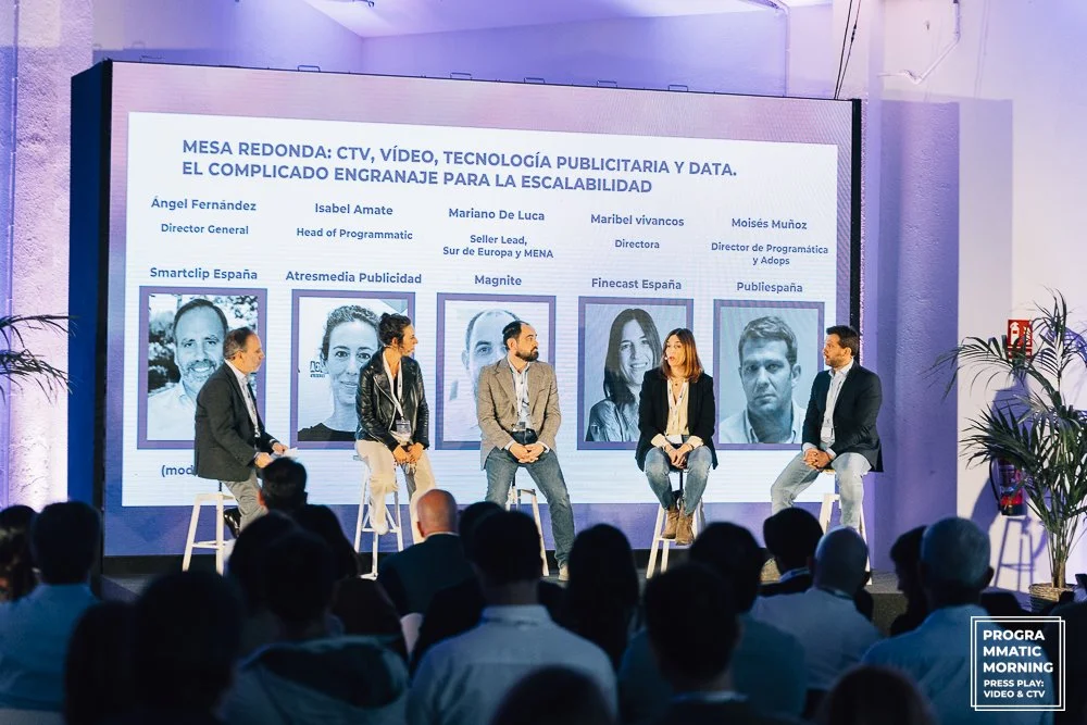 Llegó después el turno de la mesa redonda “CTV, Vídeo, Tecnología Publicitaria y Data. El complicado engranaje para la escalabilidad”. En ella participaron Isabel Amate, Head of Programmatic en ATRESMEDIA PUBLICIDAD; Moisés Muñoz Mocha, director Programática y AdOps en Publiespaña; Mariano De Luca, Seller Lead Italy, Spain & MENA en Magnite y Maribel Vivancos, directora de Finecast en España, debaten en una mesa redonda titulada "CTV, vídeo, tecnología publicitaria y data. El complicado engranaje para la escalabilidad" moderada por Ángel Fernández Nebot, director general de Smartclip Spain.