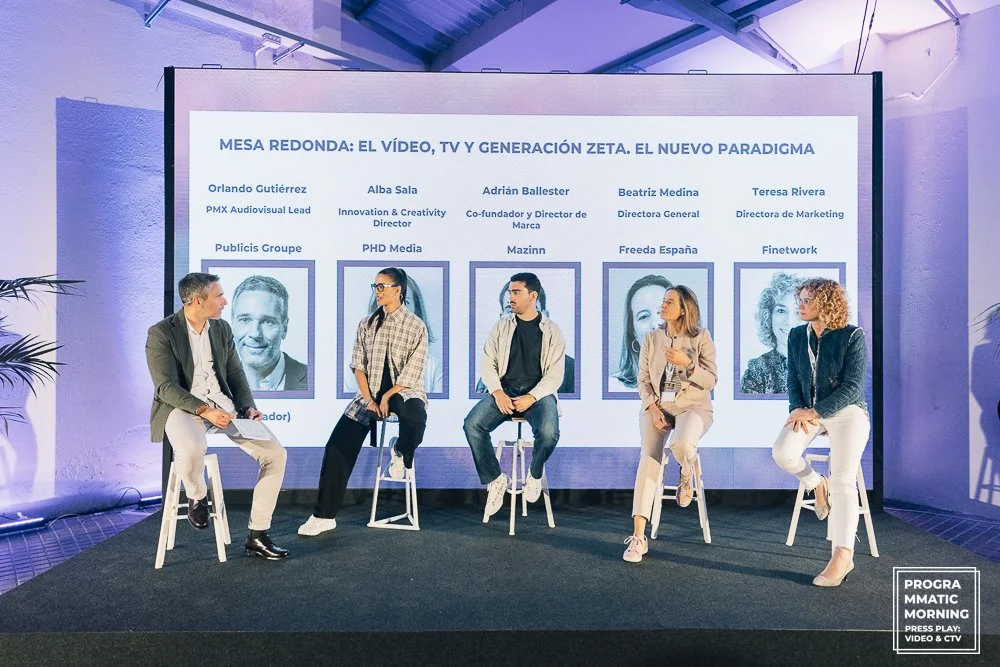 A continuación, la mesa redonda “El vídeo, TV y generación Z: el nuevo paradigma reunió a Orlando Gutiérrez Tapiador, PMX Audiovisual Lead de Publicis Groupe (que actuó como moderador); Alba Sala Morera, Innovation & Creativity Director de PHD Media Spain; Beatriz Medina Layuno, directora general de Freeda Media; Adri Ballester, cofundador y director de Marca de Mazinn, y Teresa Rivera, directora de Marketing de Finetwork.