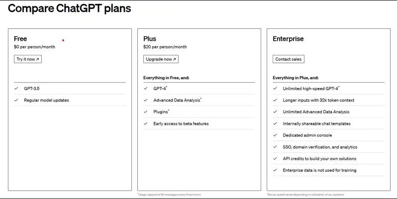 Diferencias entre la versión estándar de ChatGPT y las variantes Plus y Enterprise.