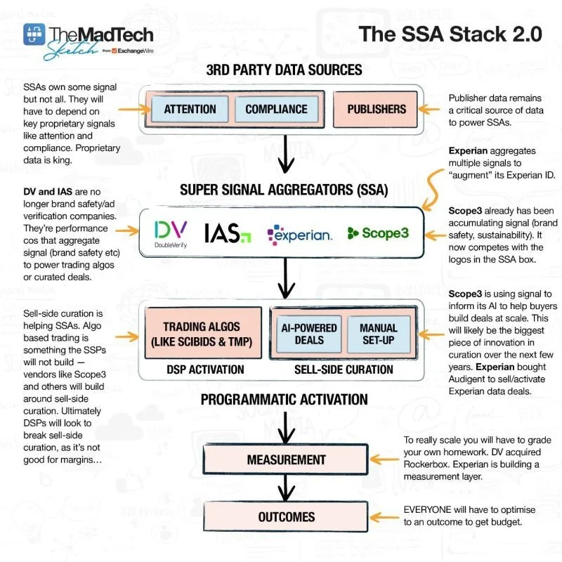 "Muchos estarán hablando del ‘giro’ de Scope3 tras este anuncio. Pero yo lo veo más como una evolución que como un giro total. Scope3 es un Super Signal Aggregator (SSA) y lleva tiempo avanzando en esa dirección. La empresa comenzó enfocándose en la sostenibilidad, un factor crucial en el ecosistema publicitario. Luego adquirió Adloox, una herramienta de verificación publicitaria. Lo que le faltaba era una capa de activación, y la curación del lado de la oferta le proporciona justamente esa capacidad. Habrá mucho ruido en torno a la ‘agentización’, pero esto es, en esencia, automatización de flujos de trabajo impulsada por IA. La verdadera clave está en la agregación de señales y el curation escalado del lado de la oferta. Brian O’Kelley está construyendo su propio SSA”, concluyó O’Kane.