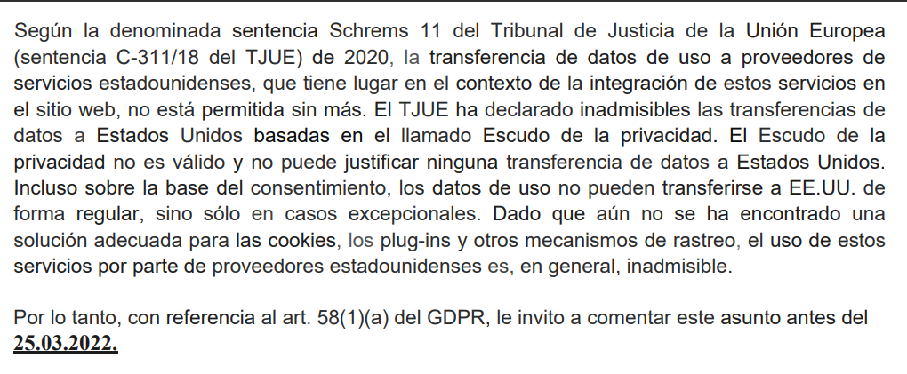 En la carta, me llamaron la atención en primer lugar sobre la sentencia Schrems II de 2020: