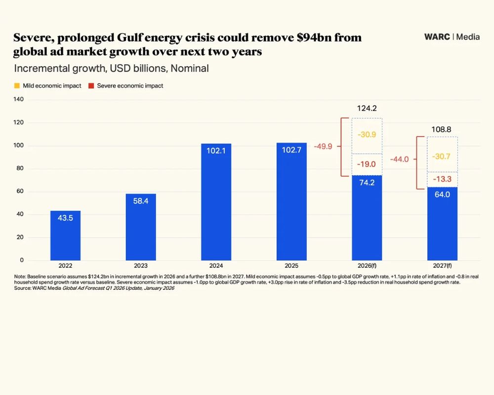 WARC prevé un impacto de hasta 94.000 millones en el crecimiento publicitario global por la crisis del Golfo